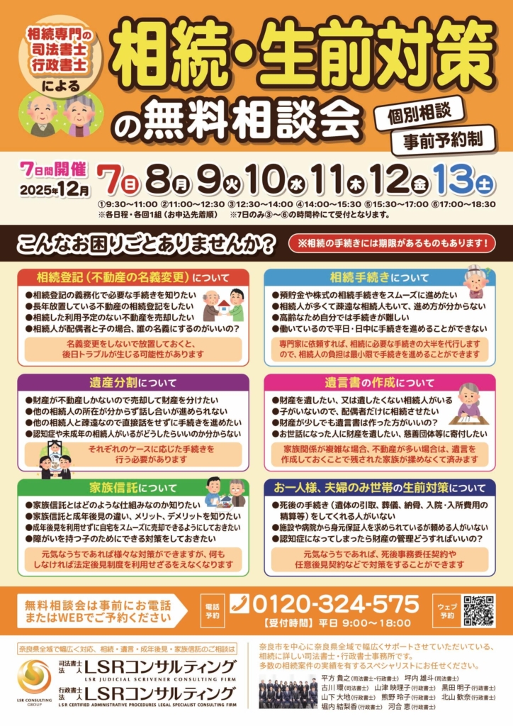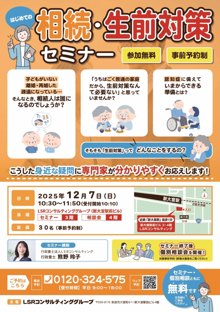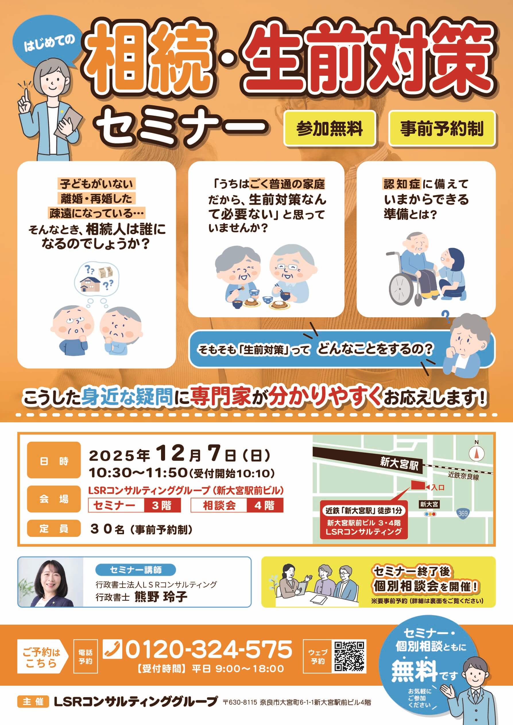 2025年12月7日(日)はじめての相続・生前対策セミナーを開催します!