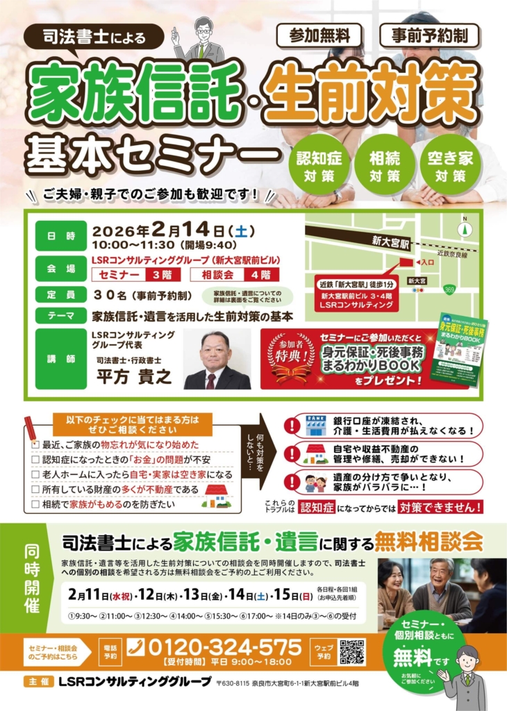 2026年2月14日(土)家族信託・生前対策基本セミナーを開催します!