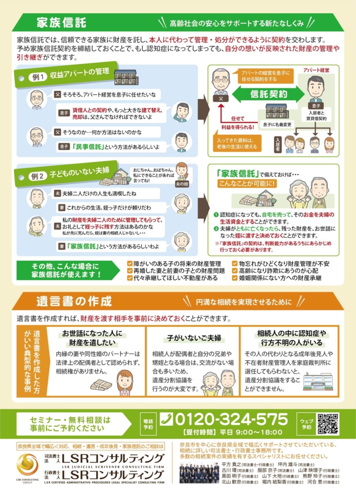 当事務所が主催する家族信託・生前対策基本セミナーのご案内です。