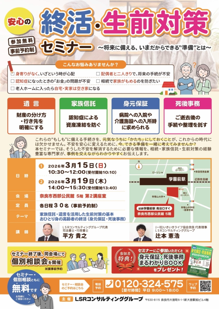 2026年3月15日(日)・19日(木)に終活・生前対策セミナーを開催します!