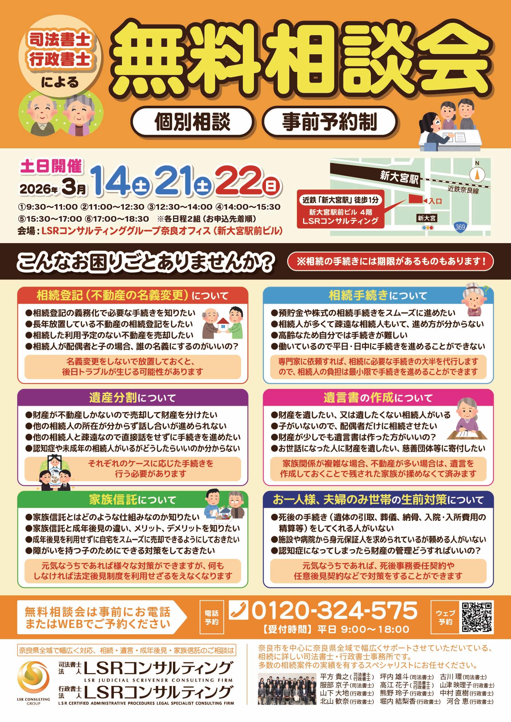 2026年3月15日(日)・19日(木)に終活・生前対策セミナーを開催します!